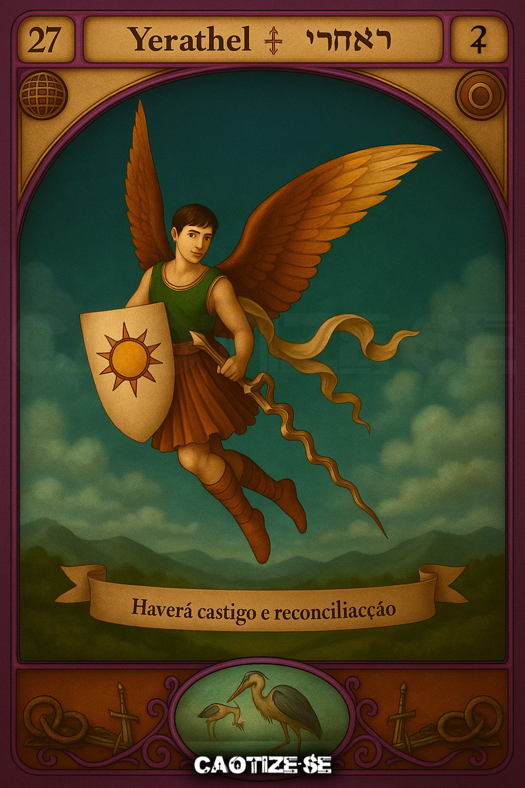Yeratel é o 27º anjo dos 72 Nomes e integra o Coro dos Domínios, sob a regência de Tzaphkiel. Seu nome significa “Deus que Castiga os Iníquos” ou “Deus que Reprime os Injustos”, mas essa ação não se manifesta pela violência — e sim pela irradiação de luz, verdade, liberdade e vitalidade. Yeratel dissipa trevas, desmancha energias negativas, afasta perigos e protege contra inimigos declarados ou ocultos. Traz entusiasmo, alegria, coragem, clareza e dinamismo, além de promover expansão, comunicação e progresso. É o anjo da redenção, da libertação e da restauração da ordem luminosa após períodos de sombra.