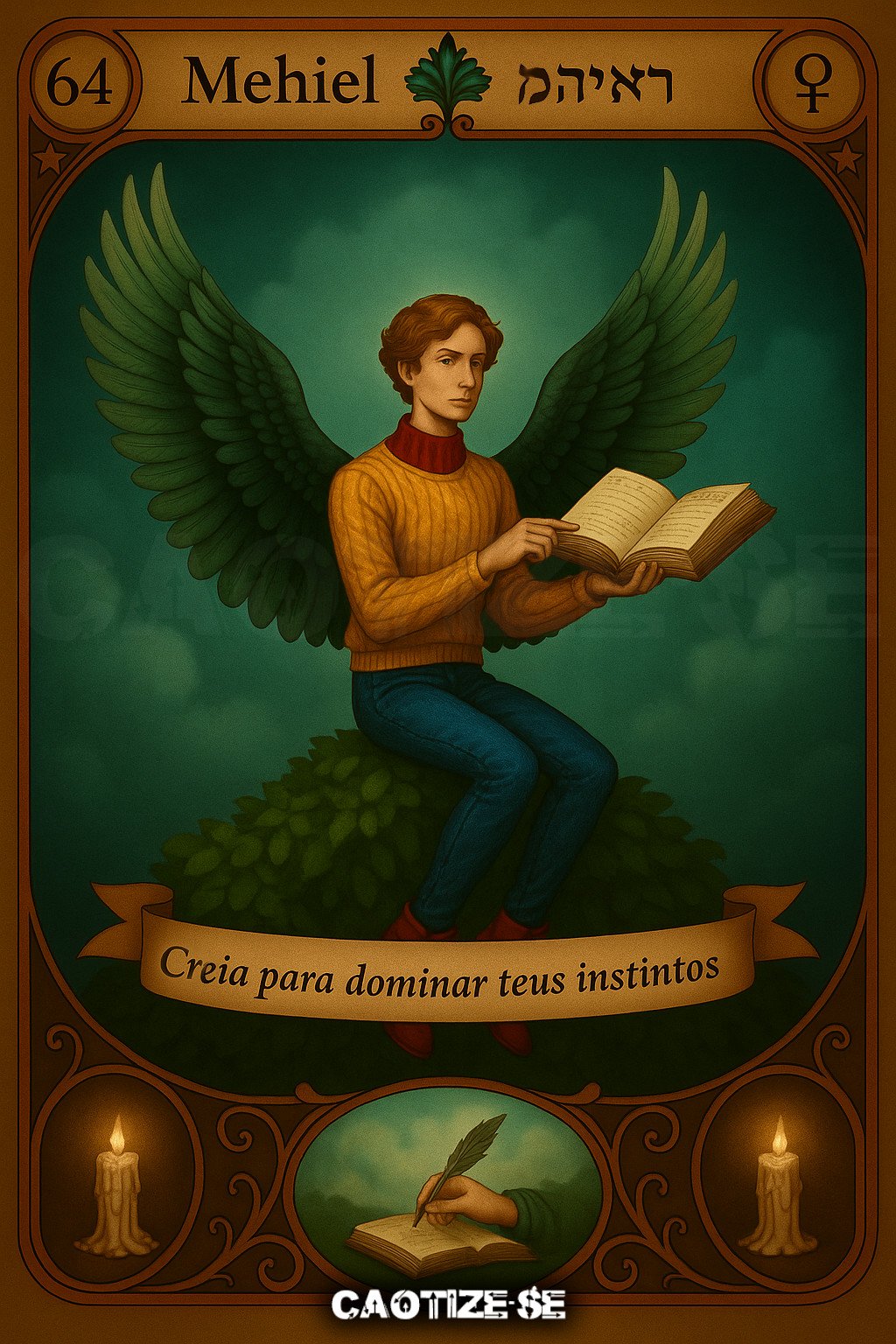 Este anjo desenvolve a habilidade de transformar imaginação em obra, disciplina intelectual, clareza mental e criatividade inspirada. Também oferece proteção psíquica, equilíbrio interior e força mental para superar bloqueios.A Atuação do Anjo Mehiel