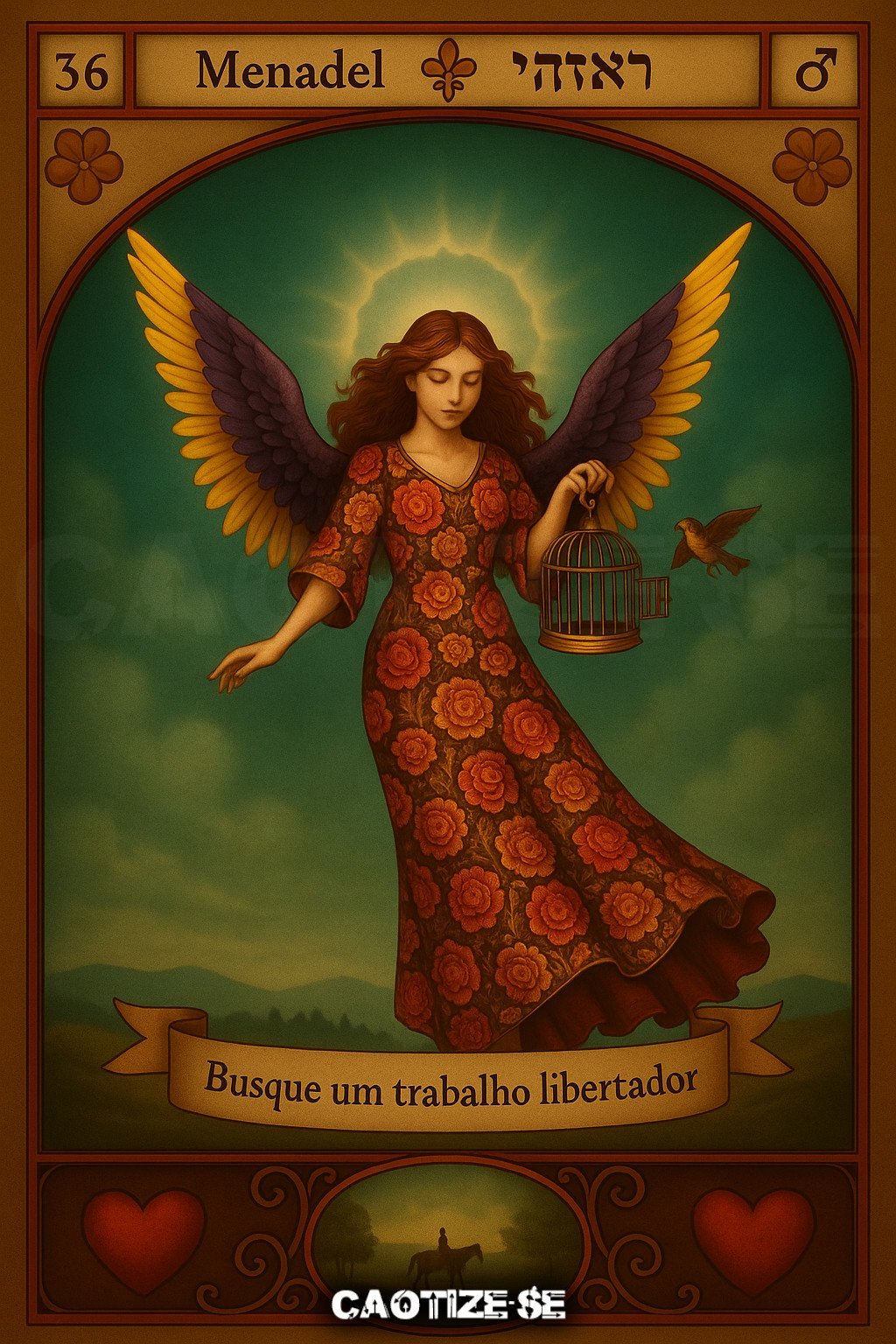 Menadel é o 36º anjo da hierarquia, pertencente ao Coro das Potestades sob a regência do Arcanjo Camael. Conhecido como o anjo do trabalho e da libertação, ele atua fortalecendo o senso de dever, estabilidade profissional e proteção contra perdas, medos e aprisionamentos — sejam eles físicos, emocionais ou espirituais. Sua energia inspira disciplina, integridade e a coragem necessária para enfrentar desafios e transformar estruturas de vida.
