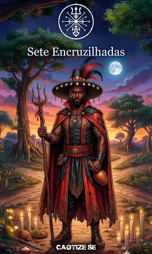 Ao se tornar uma entidade de Umbanda, assumiu o título “Sete Encruzilhadas” para representar sua atuação ampla: ele domina os caminhos físicos, espirituais, mentais, emocionais, cármicos, energéticos e sociais — as “sete encruzilhadas” simbólicas da existência humana.