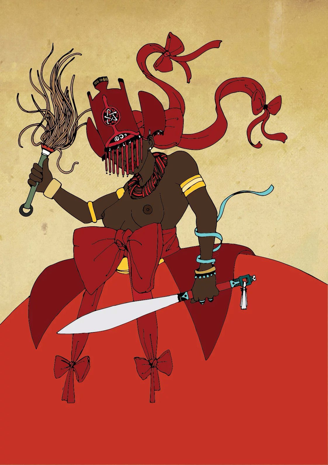A mitologia de Iansã é profundamente rica e demonstra sua natureza indomável. Segundo as tradições, Oyá nasceu como uma mulher excepcionalmente forte e habilidosa. Era conhecida por sua sabedoria, sua coragem e sua beleza radiante, que encantava todos os que a viam. Tornou-se esposa de Xangô, e juntos formavam um par de poder inigualável: ele, o rei da justiça e do fogo; ela, a rainha dos ventos e das tempestades. Outro mito importante relata que Iansã adquiriu o poder de controlar os Eguns após visitar o reino dos mortos e receber deles segredos que nenhum outro Orixá possuía. Por isso, ela é a única capaz de acompanhar Obaluayê e Omulu nas lidas com os espíritos ancestrais, conduzindo-os, comandando-os e mantendo a harmonia entre mundos. Sua trajetória mitológica a coloca como símbolo de força feminina, independência, paixão e transformação. É a guerreira que não recua, a tempestade que varre o velho para que o novo se manifeste.Atributos e Poderes