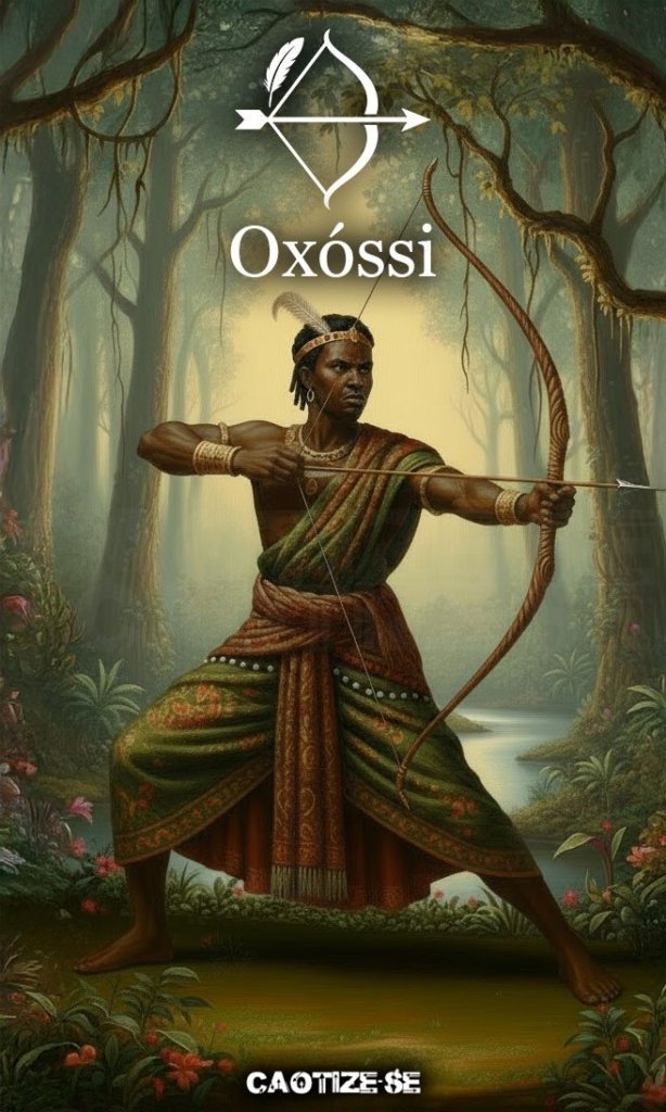 Oxóssi é o Orixá das florestas, da caça, do conhecimento e da fartura. Representa a sabedoria ancestral que habita a natureza, o olhar atento do caçador e a capacidade de buscar o necessário com precisão, rapidez e silêncio. Seu reino é a mata, onde reina com habilidade, astúcia e harmonia.
