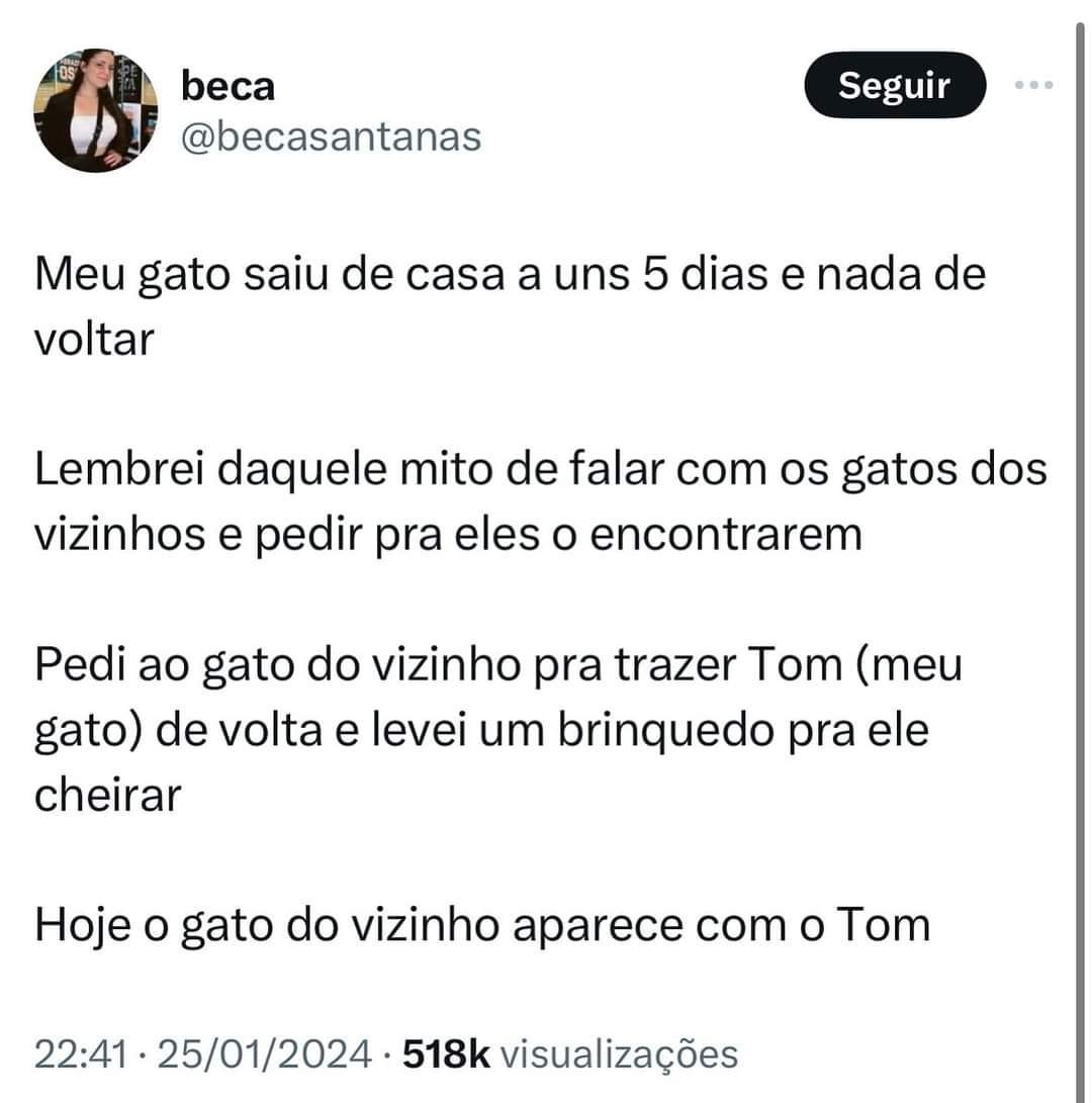 Zeskia, muito obrigada por ter levado o Seed de volta pra casa, gratidão, excelente procurador de gatos.