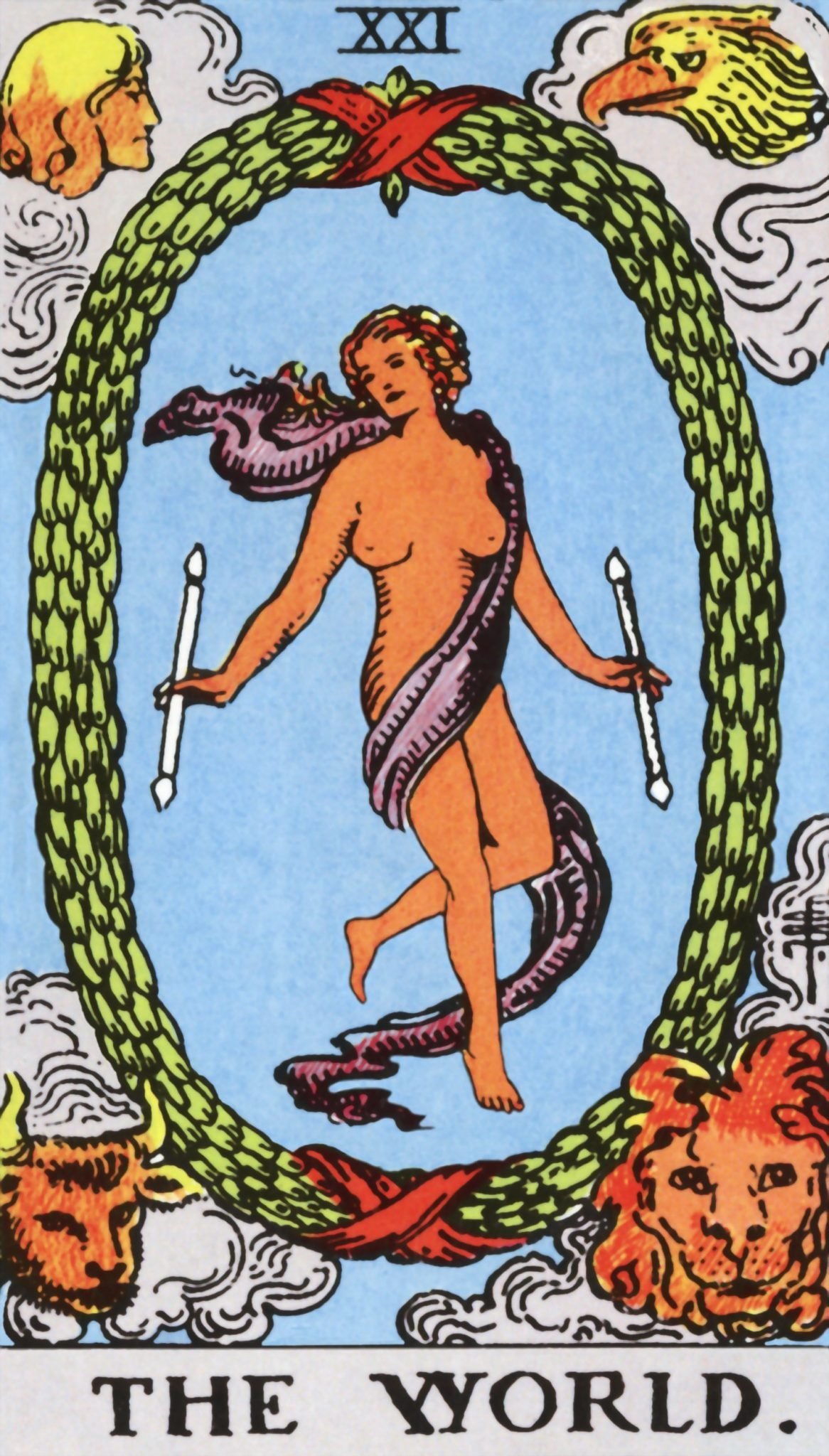O Mundo revela que o êxito completo está garantido ao consulente, pois significa a totalidade, ou Grande Destino.